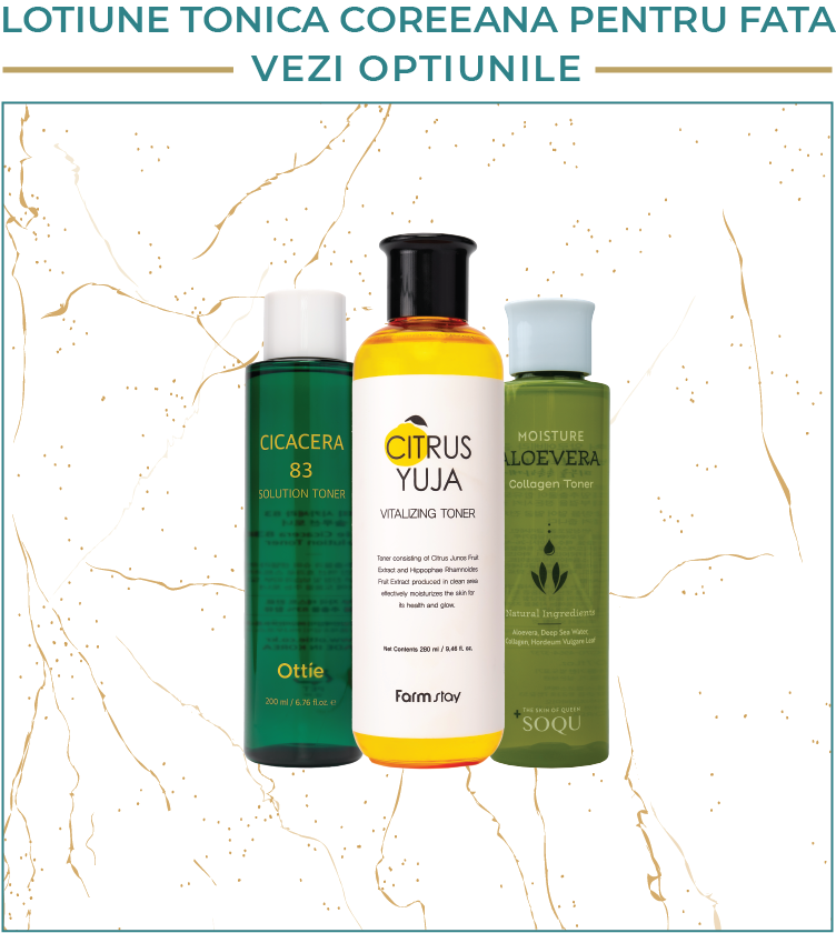 lotiunea pentru fata coreeana, ce previne descuamarea pielii, reduce porii dilatati si petele pigmentare, dar si alte produse de ingrijire a tenului coreene, precum