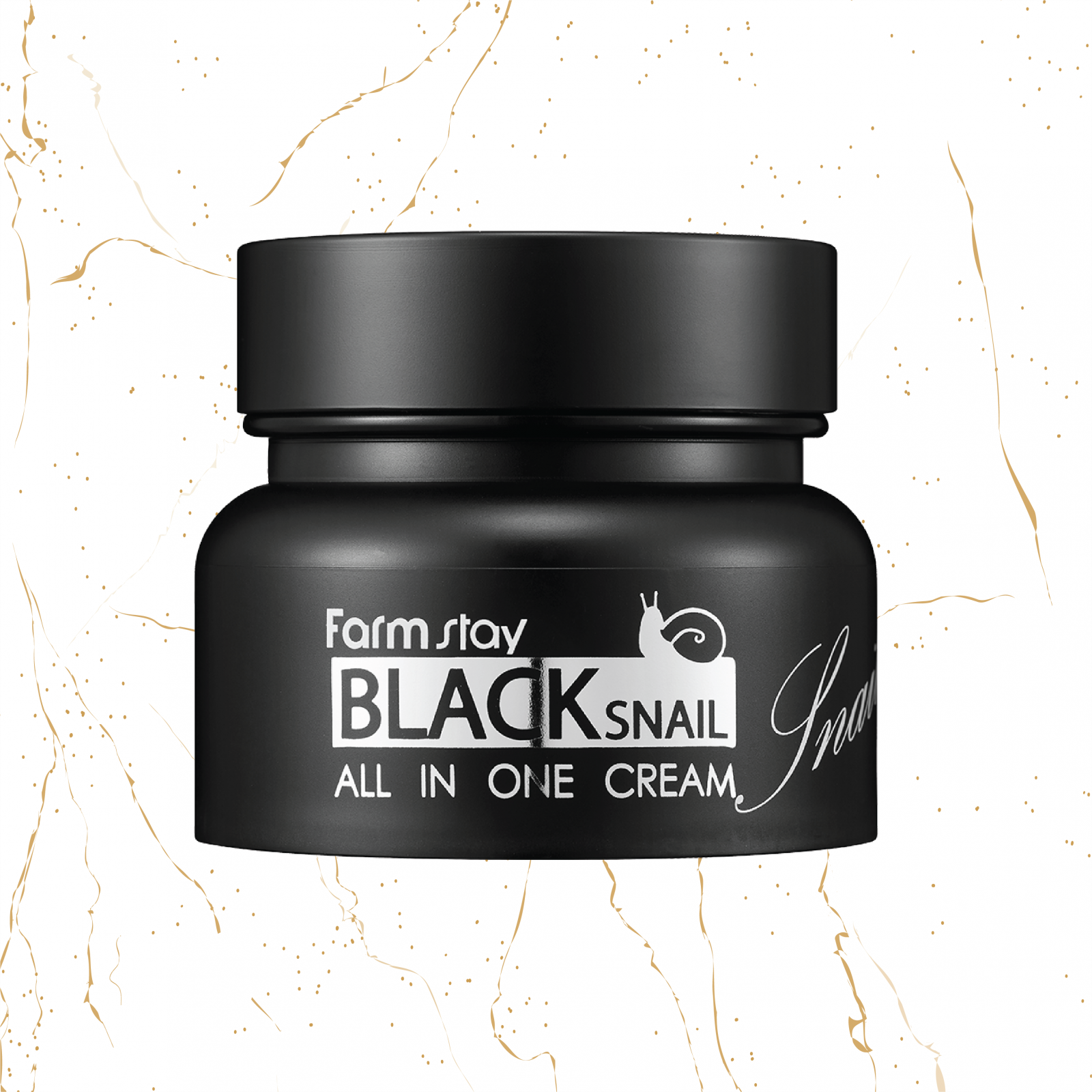 Crema de fata cu extract de melc negru Farmstay Black snail All-In One, datorita extractului de melc negru si Niacinamidei (doua forme de vitamina B3), hidrateaza si hraneste in profunzime stratul profund al pielii, imbunatatind tonusul si reducand ridurile fine. Este o crema cu multiple efecte de vitalizare si anti-imbatranire. De asemenea, aceasta imbunatateste elasticitatea pielii, prin extractul de lemn dulce si extractul de gutui, din compozitie.
